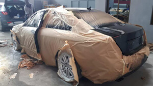 Une fois que le véhicule est prêt, le peintre procède au marouflage (il recouvre de papier tous les éléments qui ne doivent pas être peints). Le peintre applique les couches de peinture selon des prescriptions pour atteindre la teinte originale de votre véhicule.